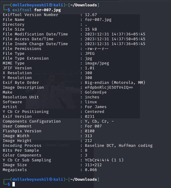 Running exiftool in this image, we can see Unusual Image Description.eFdpbnRlcjE5OTV4IQ== This looks like base64 encoded string