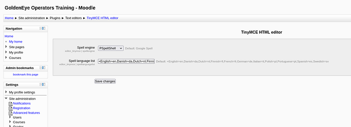 Under TinyMCE HTML editor set Spell engine to PSpellShell