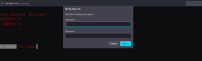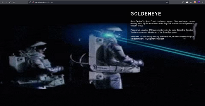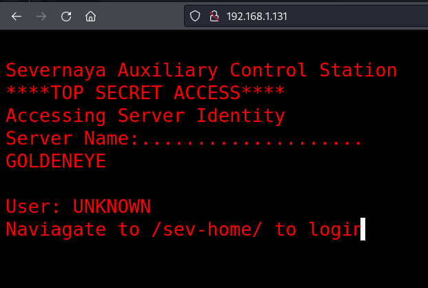 On port 80, we have Severnaya Auxiliary Control Station. Website is telling us to navigate to /sev-home for login.