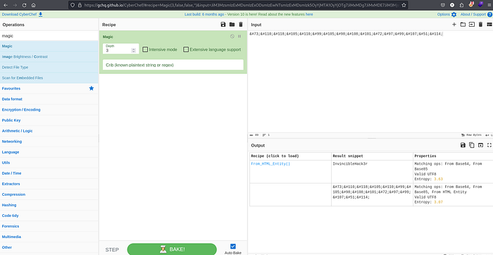 Using cyberchief and magic recipe we can easily decode the password. InvincibleHack3r