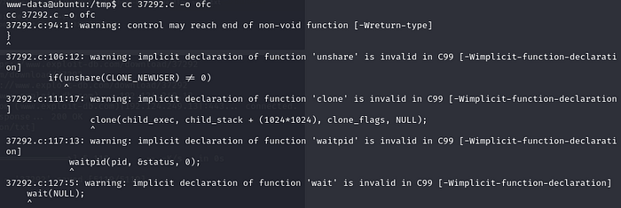 Then I used gcc to compile the .c file, but sadly gcc was not installed.gcc 37292.c -o ofc