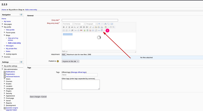 Under Blogs, add a new entry and write anything , then select the word and click on the tick icon.