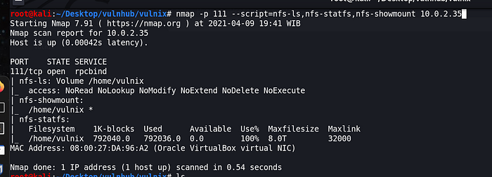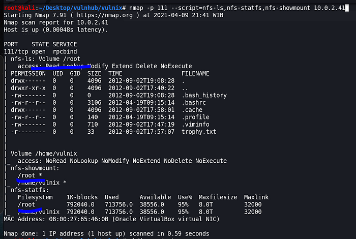 nmap -p 111 --script=nfs-ls,nfs-statfs,nfs-showmount 10.0.2.41Now, I can mount /root.