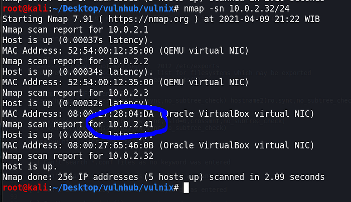NOTE: The IP address in the snapshot is my old VM, 10.0.2.35. However, the scan result is the same as 10.0.2.41.