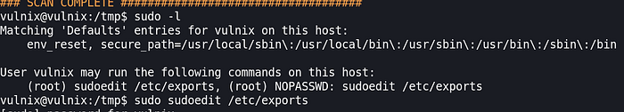 sudo -lI can edit /etc/exports.