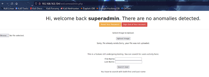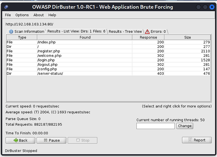 Before going deeper, we can try scanning the directory contained in port 80 using dirbuster. Based on the scan results from dirbuster, we found welcome.php, the web homepage after logging in.