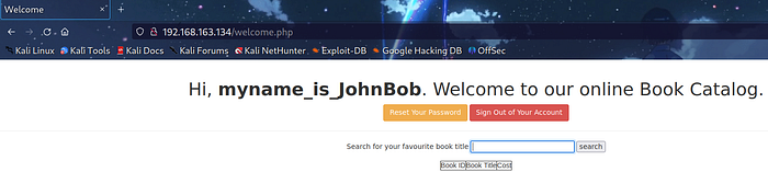 After that, we log in by inputting the username and password to the login page. Then, we are successfully directed to the welcome.php page.