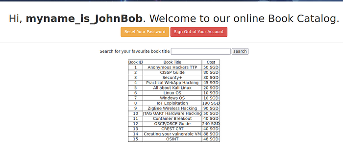 The page displays data containing three columns containing book ID, book Title, and Cost. Based on this, we know that the table has three columns. Next, let’s try to test for sql injection vulnerabilities.