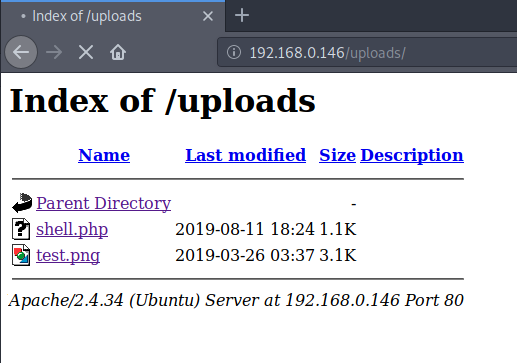 Once the listener was up and running, I navigated to http://192.168.0.146/uploads in my browser and clicked the shell.php file. My listener immediately responded with a new connection.