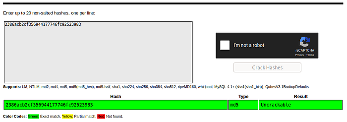 except for superadmin. To get this I simply copied and pasted it into crackstation found that the password was Uncrackable .