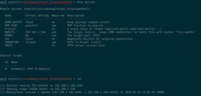 Perfect, it worked as expected and we are now on the box with a Meterpreter shell. :-)