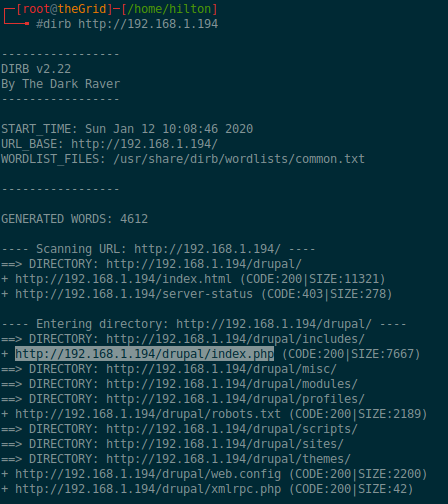 It didn’t work, fair enough. It would have made the initial foothold easier, but there are more ways for us to access the box. We should make sure the creds are real by using them to log into the Drupal panel and once we know if they work or not we can then start trying to use them to exploit the box.