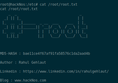 Thanks to Rahul Gehlaut for creating the VM and for Vulnhub for hosting it and all the other great VM’s on their site.