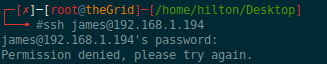 Now this is what we have been looking for, we already made a note of the user James from the Drupal blog but now we have a password to go with it. We should try to use them on the SSH port to see if we can log onto the box. If that doesn't work then we will try to use them to log into the Drupal panel. So SSH first.