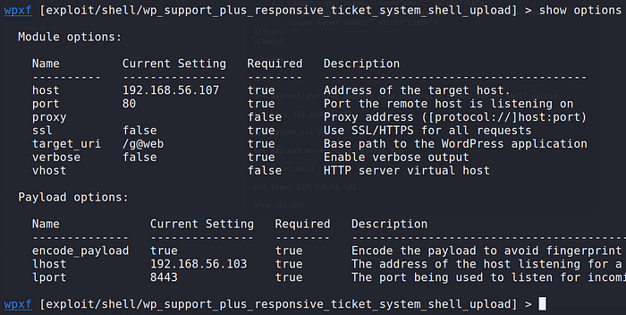 use exploit/shell/wp_support_plus_responsive_ticket_system_shell_upload