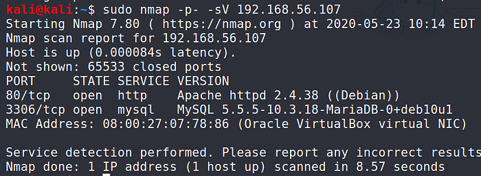 You need to fire arp-scan or netdiscover to find the IP of hackNos. There are only two services- HTTP(80) and MySQL(3306).
