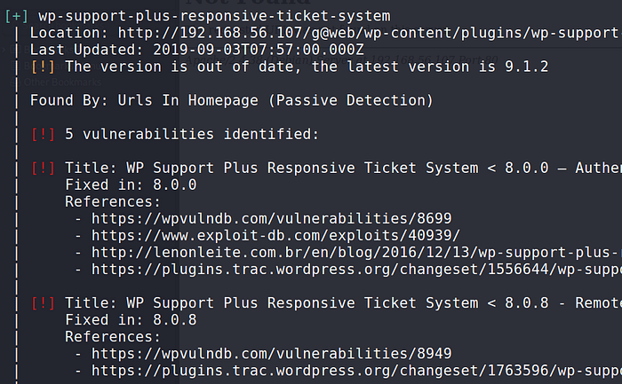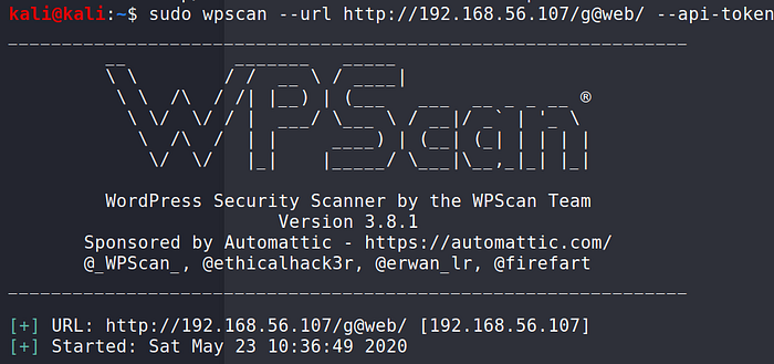 wpscan --url http://192.168.56.107/g@web/ --api-token <token>Press enter or click to view image in full size