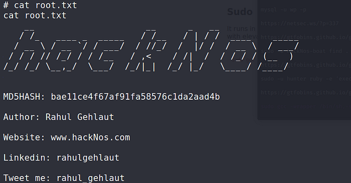 hackNos is a good machine with focus on enumeration. GTFO chaining scenario was fun. Overall a solid challenge.