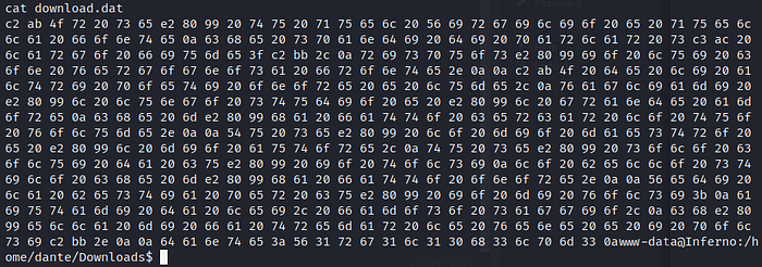 Enter in directory /home/dante/Downloads/ and finally we find an interesting file.