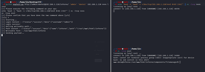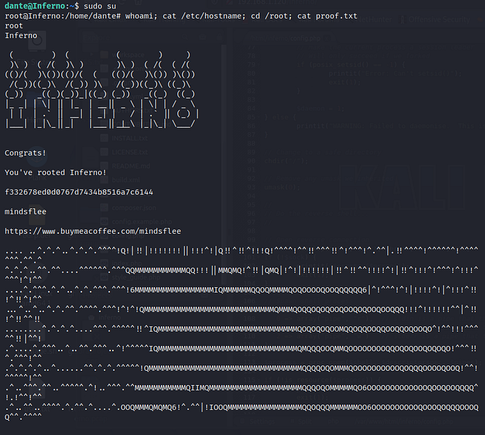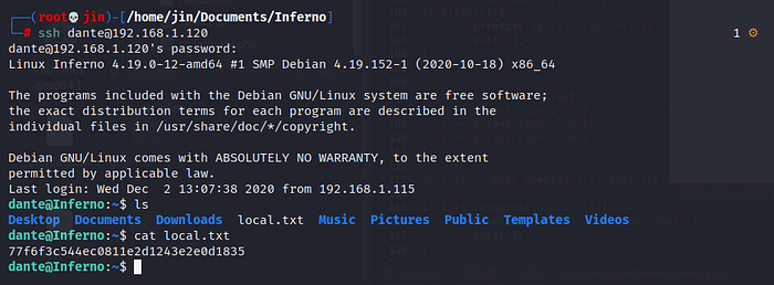 And finally we have credentials for dante!!! For convenience, instead of doing "su dante", I used the ssh dante@IP command and went back to get a better shell.