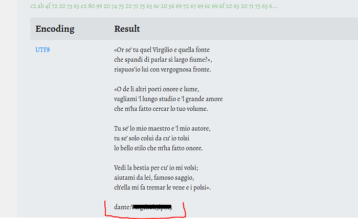 I used chiper-identifier to parse the string and it seems to be a Hex, let’s go and decode it.