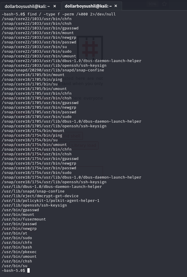 Looking at the result we can see we can see bash has suid permission, which is unusual.
