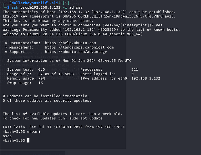 Previously we saw there was only 1 user which is oscp and we have rsa key. So lets try to login.