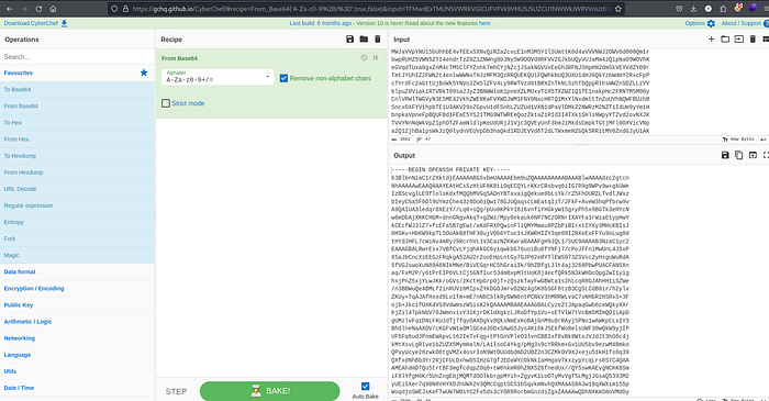 The decoded string is rsa key for ssh login.