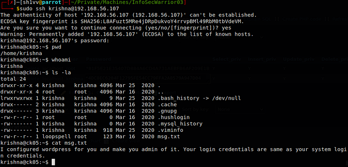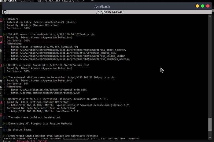 challenge of InfoSecWarrior CTF: 3 Walkthrough by Infosec Warrior CTF 2020. The box is designed by Vishal Biswas aka CyberKnight. The goal is to gain the highest privileges and collect only 2 flags (user flag and root flag). According to author box consist WordPress developer configured the machine to work internally. But due to some miss-configuration WordPress is exposed to the outside world. Use your skills and get the root flag.
