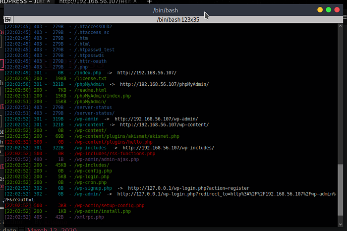 After seeing the content of the Web page on Port 80 , I brute-forced the dirs on this site using a tool dirsearch, The result was that I found a WordPress login page and a MySQL server login page: