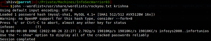 so i used JohnTheRipper to brute-force this hash via rockyou.txt , and the password was: infosec