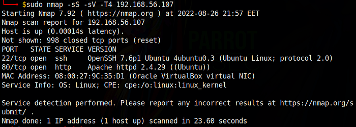nmap -sS -sV -T4 192.168.56.107