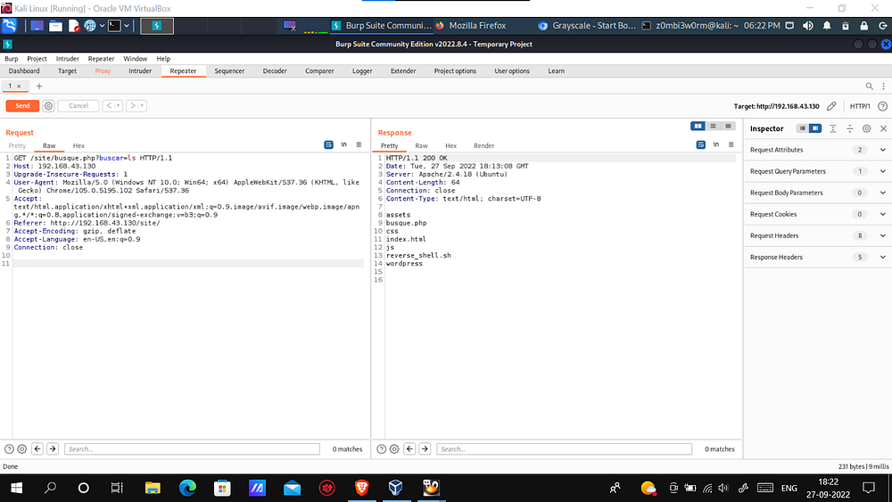 I saw a ‘=’ symbol in the URL. That’s when I realized there’s a chance for an OS Command Injection. So I intercepted the request in Burp Suite for more flexibility. And after intercepting, I sent the captured request to “Repeater”.