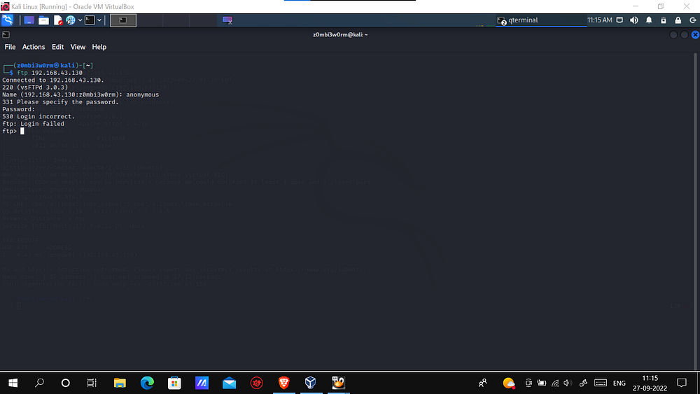 I attempted to access FTP using the default anonymous credentials (anonymous:anonymous).
