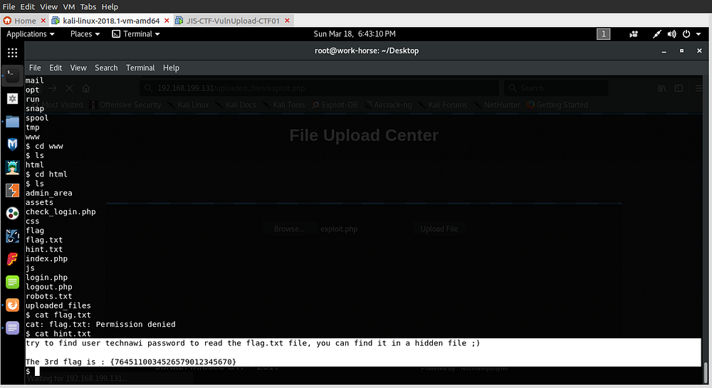 But, there is a hint.txt file, on checking it I get the 3rd flag!! :
