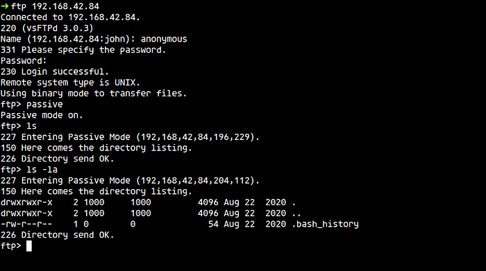 According to Nmap results, ftp has anonymous login allowed. I tried logging in to see if there is something interesting.