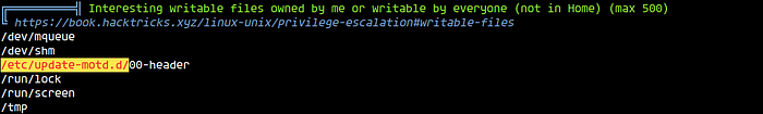 This /etc/update-motd.d/00-header looks interesting and I googled about its privesc. I used the following command.