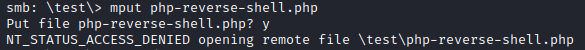 Since these folders are accessible from the web server, I attemped to upload my php reverse shell from pentestmonkey in the hopes of getting a quick shell. None of the folders appear to be writeable.