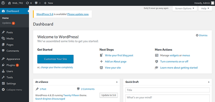 I went back to the Wordpress site to see if I could log on with any of the information we found. http://<ip address>/wordpress/wp-login.php is the default login page. Knowing that our admin is lazy and may resuse creds, I tried user ‘admin’ and password ‘TogieMYSQL12345^^’ that we found from our SMB enumeration and logged into the Wordpress admin page.