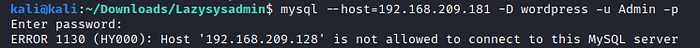 I tried to remotely connect to the database with the mysql client (remember tcp/3306 is open) but no luck.
