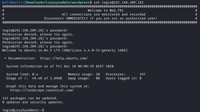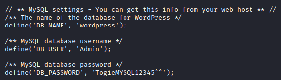We have seen “Togie” before in another password, so maybe our admin uses that for ssh.
