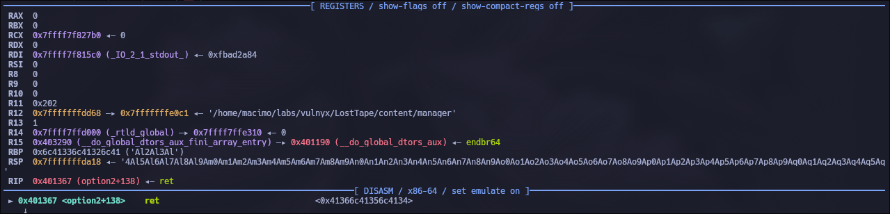 pop r13 y la función LTe❯ objdump -D ./manager | grep 'LTe'
